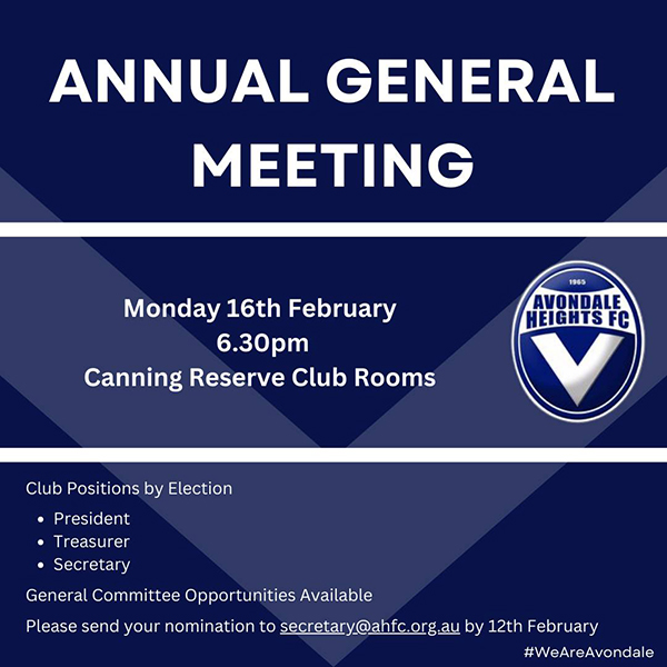 AVONDALE HEIGHTS FOOTBALL CLUB ANNUAL GENERAL MEETING