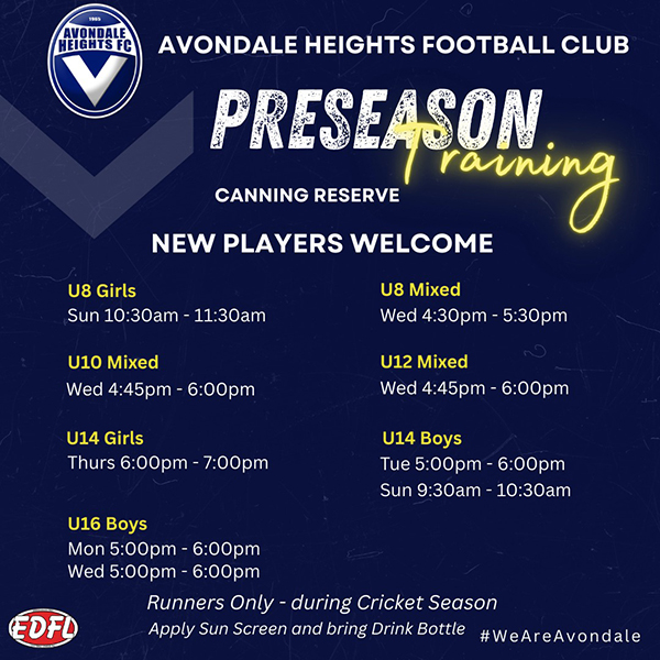 We are excited to have our U8's back for pre-season training from Wednesday 18th February at Canning Reserve from 4:30-5:30 pm.