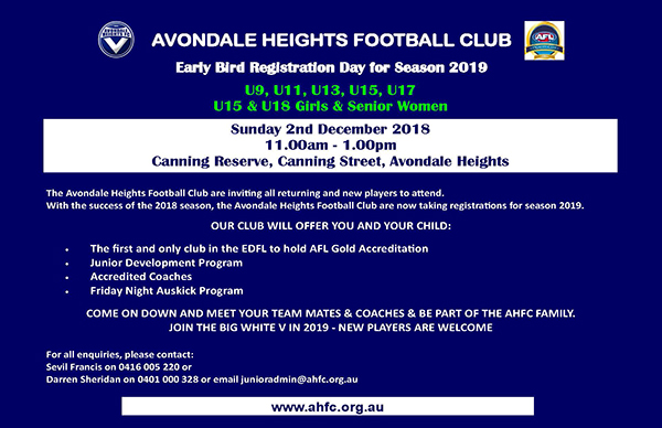 EARLY BIRD JUNIOR REGISTRATION - 2019